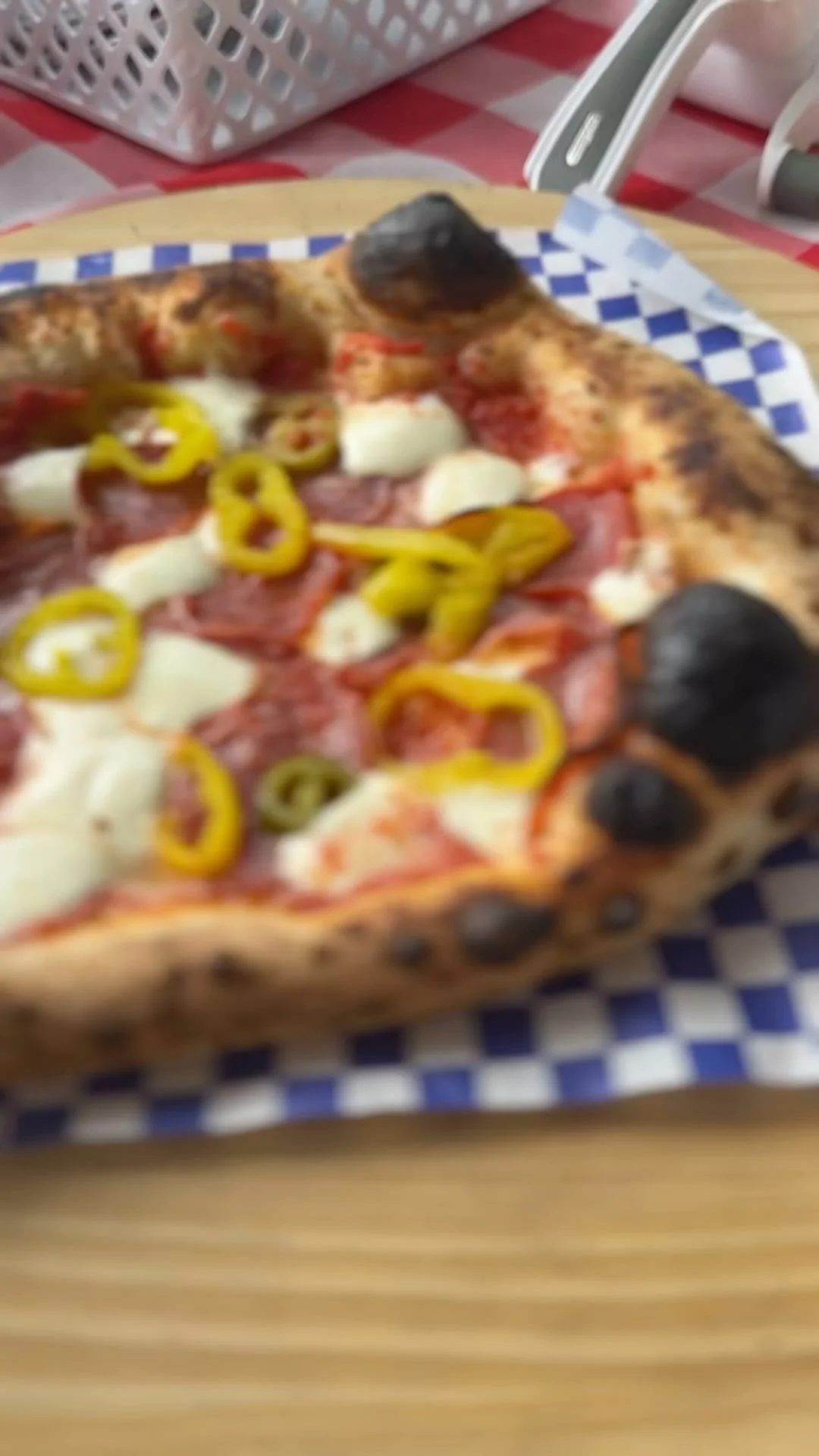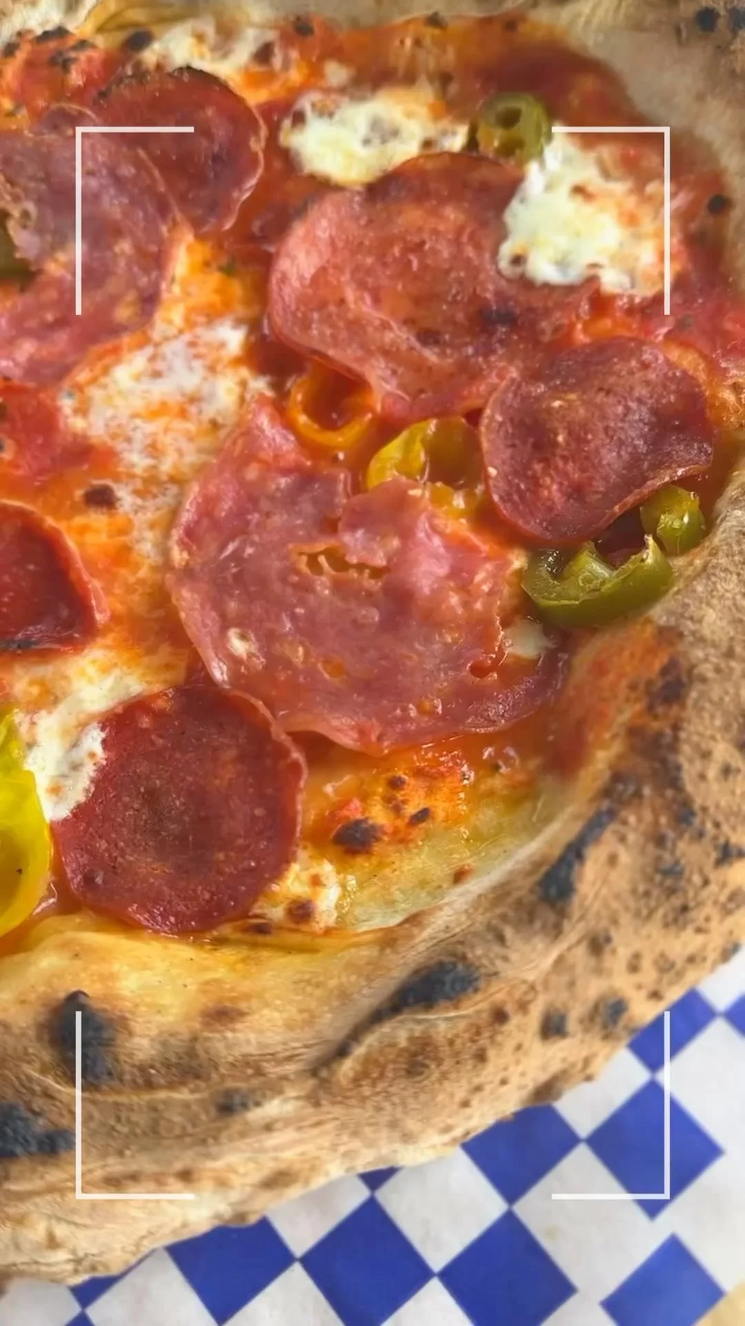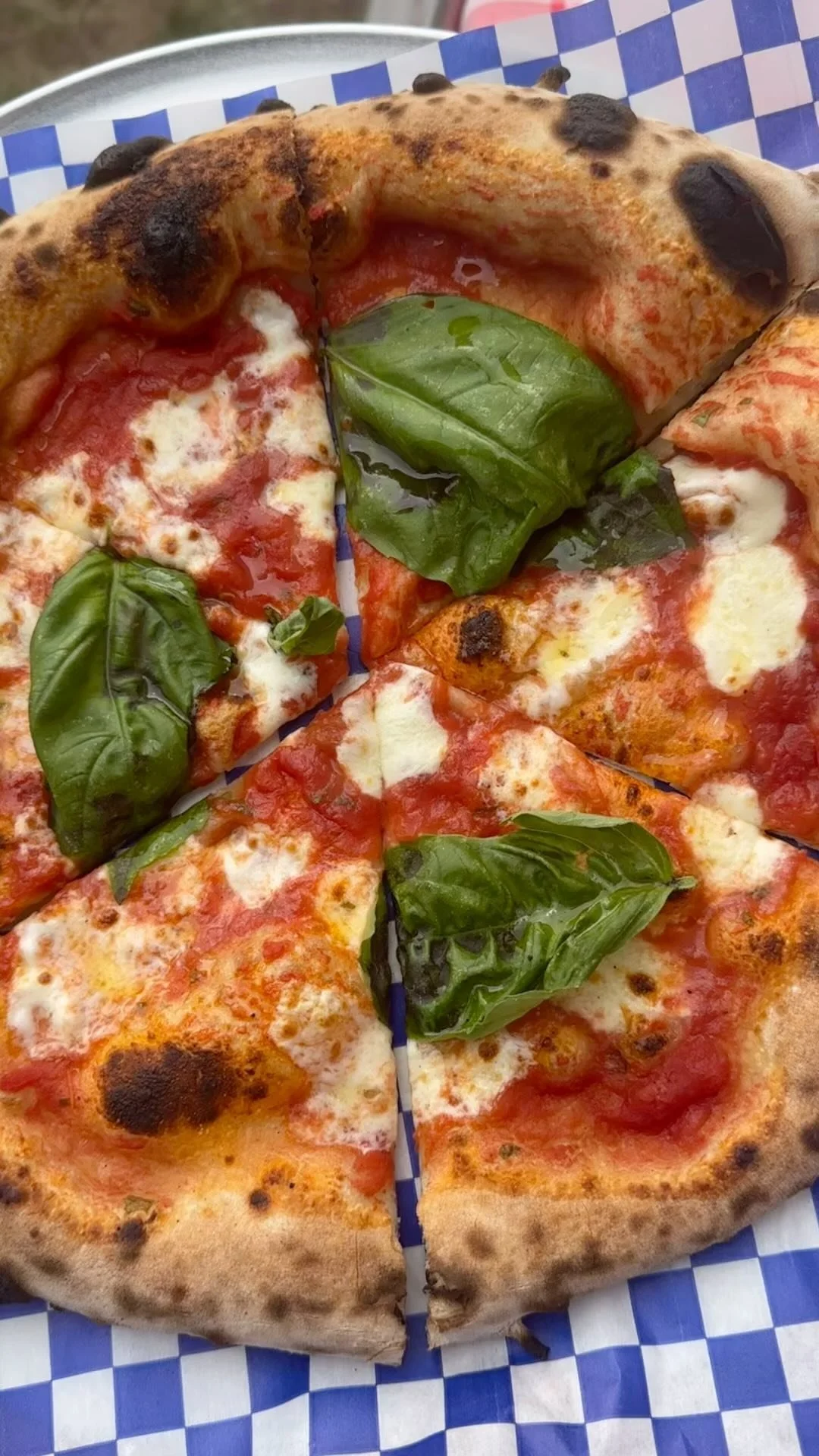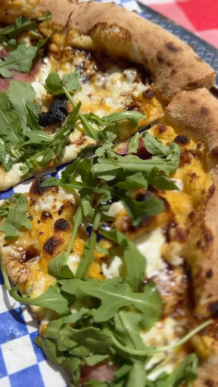 Our pizzas are baked at 800ยฐ for 90 seconds in a traditional Italian wood-fired oven for the perfect char and flavor.